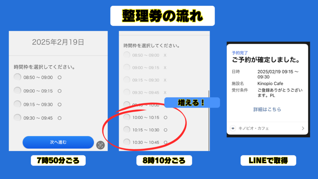 ✅ こまめにサイトを更新して整理券が取れるかチェック!