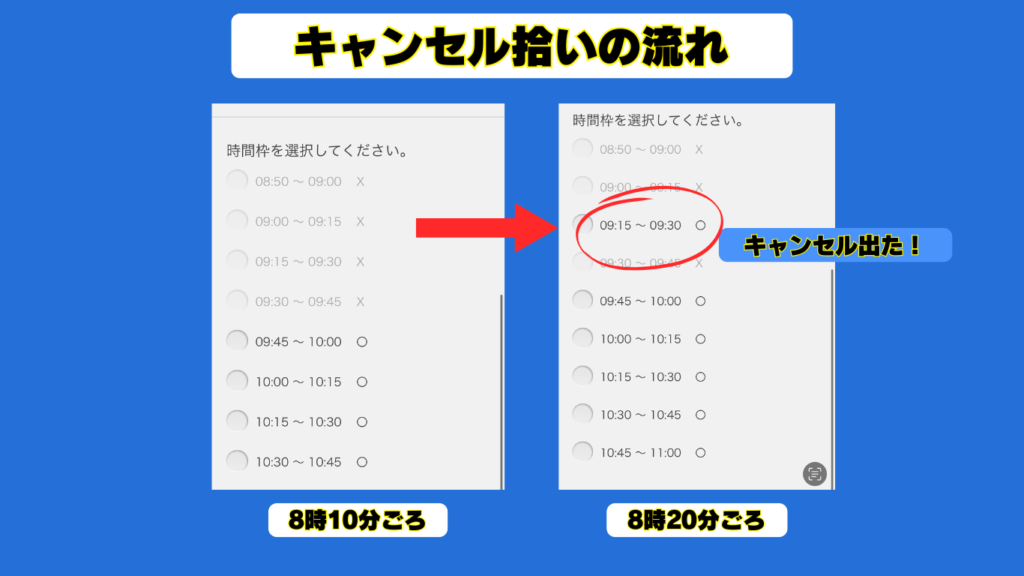 「希望の時間帯がない!」と焦らず、少し待つと次の時間が出てくることもあります!