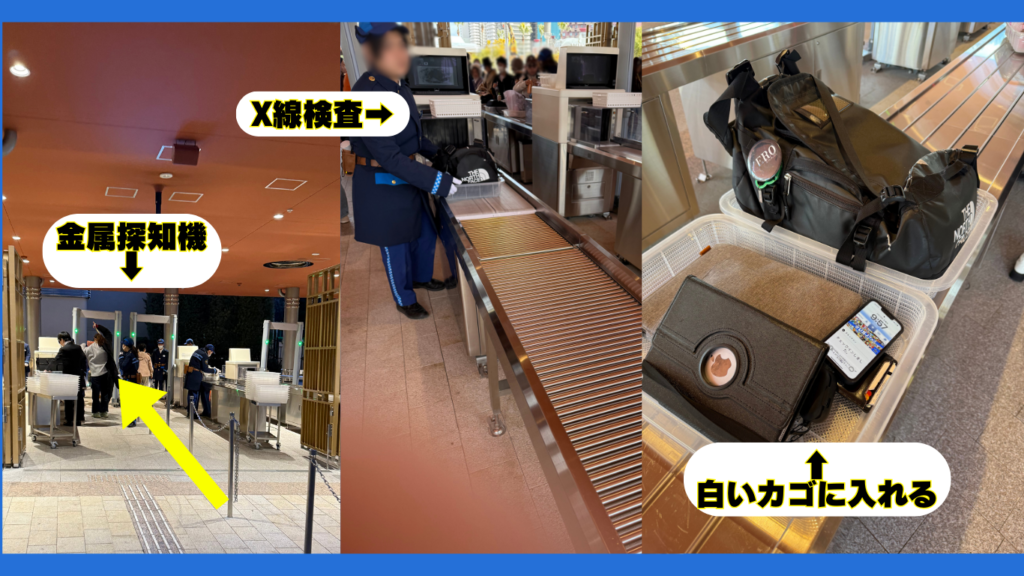 これで、手荷物検査と入場ゲートもバッチリ!✨ しっかり準備しておけば、スムーズにUSJへ入れるので安心ですね。特に朝の混雑時は、ちょっとした工夫で待ち時間をグッと減らせます。