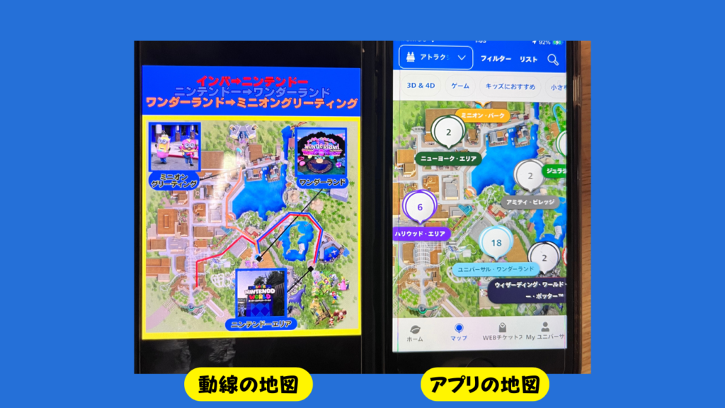 🔹 2台目:ユニバ公式アプリで現在地を確認